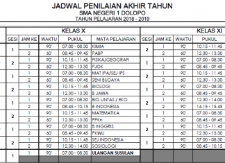 JADWAL PENILAIAN AKHIR TAHUN PELAJARAN 2018-2019